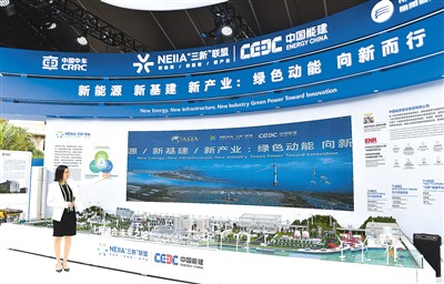 博鳌亚洲论坛2023年年会上,中国能建参展人员介绍“新能源 新基建 新产业:绿色动能 向新而行”展台。