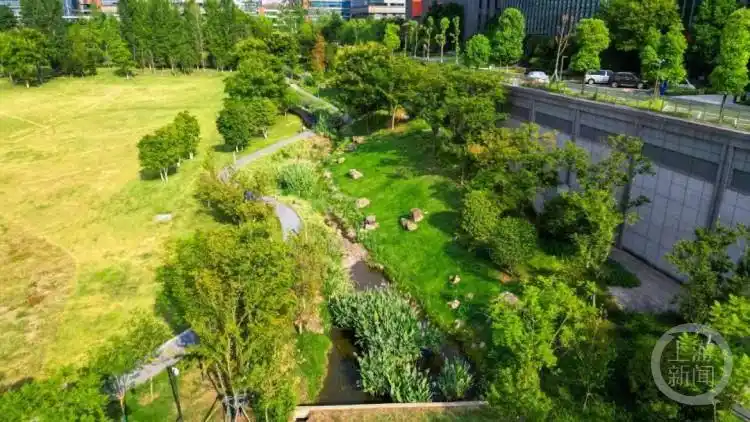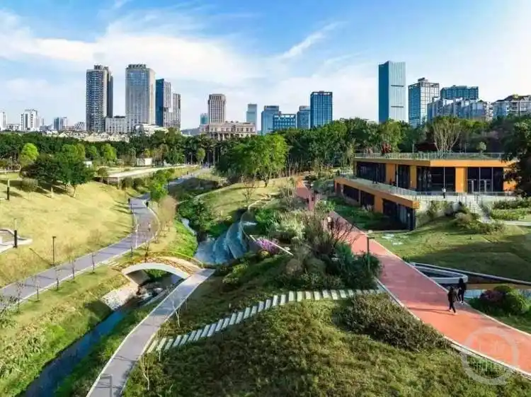 动步公园位于两江新区,绿化覆盖率达90%,是生态、生活、生产相融的城市滨水空间。在动步公园等区域,透水铺装、绿色屋顶等措施构建了雨水“渗、滞、蓄、净、用、排”的良性循环。其中,透水铺装在加强路面自然渗透的同时减少地表径流,可实现雨后不积水。