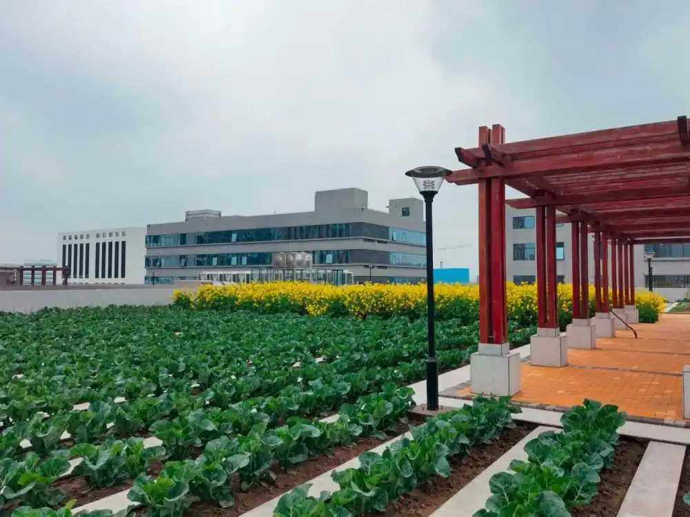 改变了传统的屋顶绿化方式,打造了一座用于蔬菜、水果等农产品种植的生态环保的“屋顶农场”,实现了节地、节水、降温、缓解热岛效应的多重效益——区内首个“屋顶农场”。